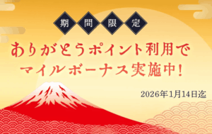 期間中、ありがとうポイントを1ポイント使用するごとにボーナスマイルを1マイル付与します。