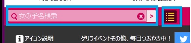 「女の子名検索」と「フィルタ機能メニュー」