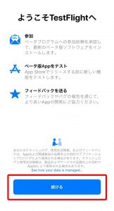 初めに、下記の緑色のボタンより「テストフライト」というアプリをAppStoreより、インストールしてSTEP 2へお進み下さい。