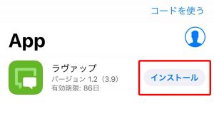続きまして、下記の緑色のボタンをタップすると、テストフライトが開きますので「ラヴァップ」アプリをインストールして下さい。