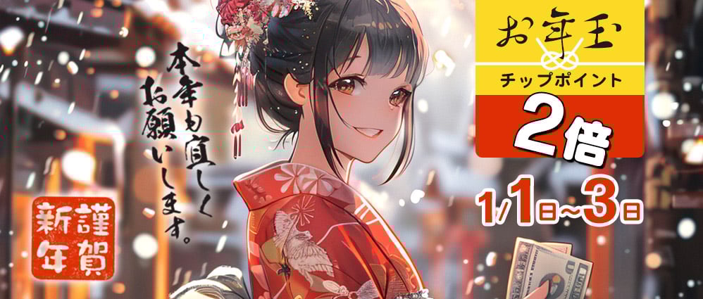 お正月の三が日、女の子へ贈るチップの同額ポイントをDXLIVEからもプレゼント致します。