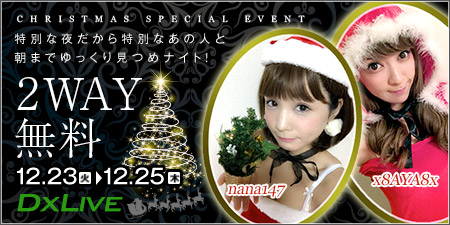 特別な夜だから特別なあの人と朝までゆっくり見つめナイト!(2WAY無料)〜 12/23(火)〜 12周年の今年はまだまだイベントが盛り沢山!一人の寂しさが身に染みるクリスマスにDXの女の子達は温まれる男性を探してますよ! この機会にお気に入りの子とはより深い関係に、またあたらしい出会い見つけて、いい年越しを迎えたい方へ2WAY無料イベントのダブルイベントを開催! 12/23~12/25の三日間はエッチなサンタやトナカイとイチャイチャクリスマスも悪くないんじゃ!